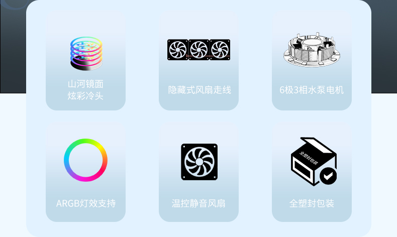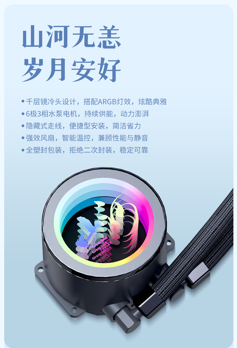 1.千层镜冷头设计,搭配ARGB灯效,炫酷典雅